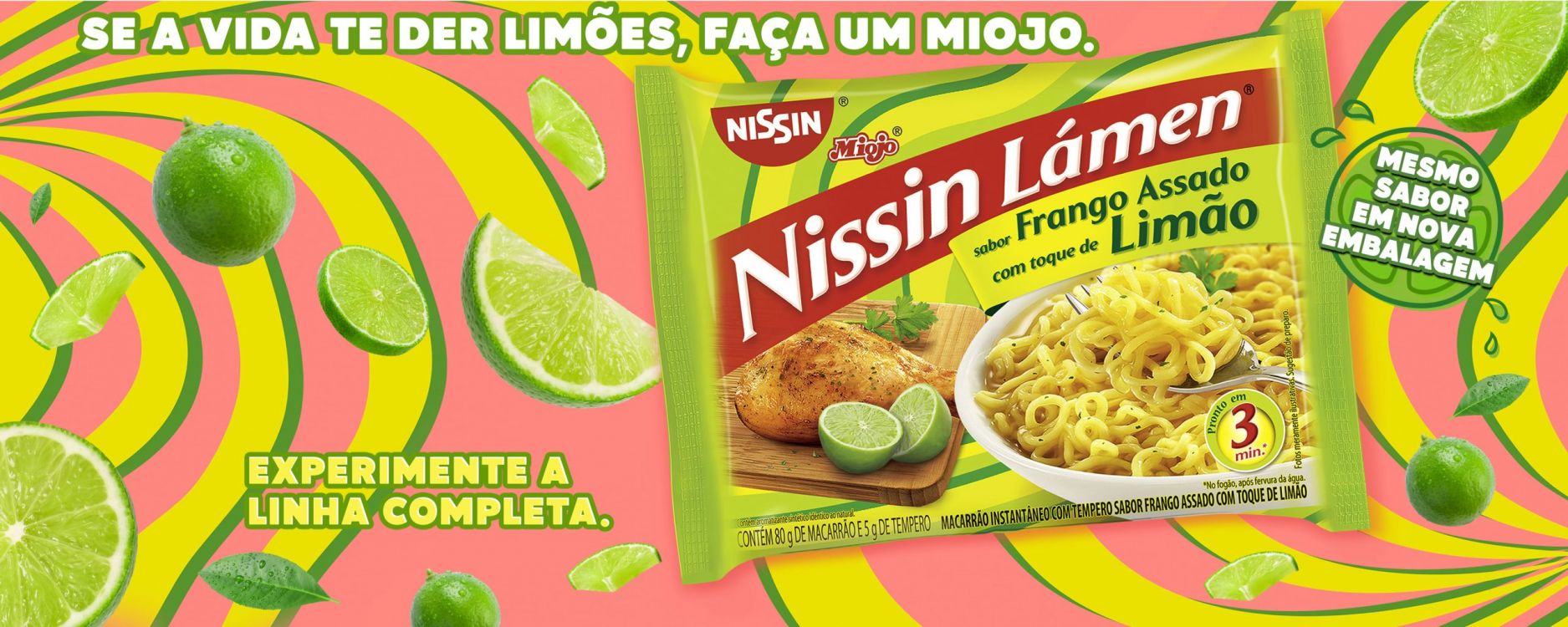 Ingredientes do macarrão: farinha de trigo enriquecida com ferro e ácido fólico, gordura vegetal, sal, reguladores de acidez carbonato de potássio e carbonato de sódio, estabilizantes trifosfato pentassódico, difosfato tetrassódico e di-hidrogenofosfato de sódio e corante beta-caroteno sintético.